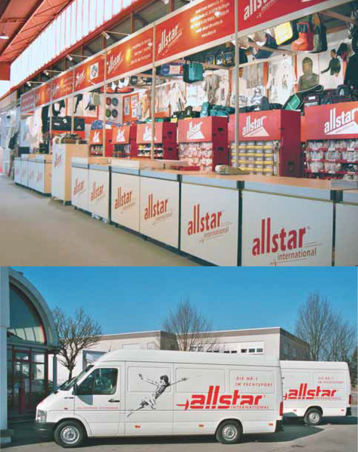 Allstar可以說是全球使用最多的高品質擊劍品牌了,除了專用Leon Paul的美國隊和專用Negrini的義大利隊以外,幾乎全球的國家代表隊都採用Allstar的產品,包括台灣在內。經常可以看見擊劍奧運冠軍在奪冠瞬間猛地摘下Allstar的頭盔,將其和劍揮舞在空中呐喊。